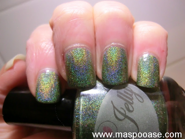 I've already reviewed some of the other Pretty Jelly holo polishes in the past, Diamond S-teal-er , Grape Escape and Bullet Rouge and I've enjoyed them. When I saw this mossy green, I couldn't resist!